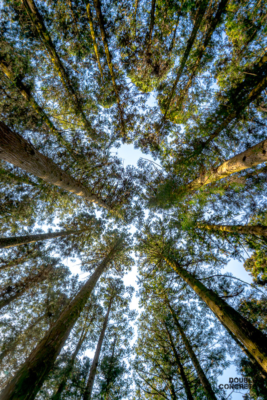 고개를 들자 펼쳐진 푸른 하늘과 삼나무의 향연