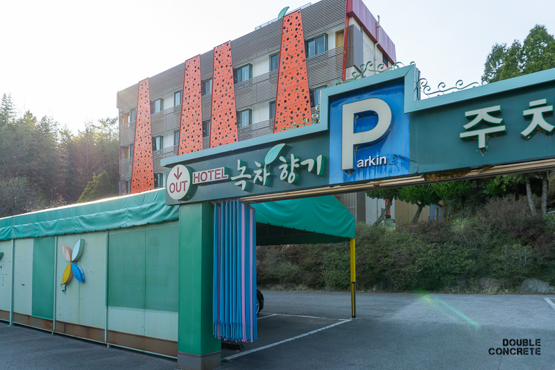 겉으로만 보면 특이한 디자인에 뭔가 있어 보인다. 하지만 사진에서 보는 이 모습이 실제와는 전혀 다르다는 걸 말하고 싶다. 건물 앞에 서자마자 음침하고 어두운 기운에 당황스러웠다. 호텔이라기보다는 관리되지 않은 학창시절 극기훈련 수련원 같은 느낌에 불안감이 밀려왔다.